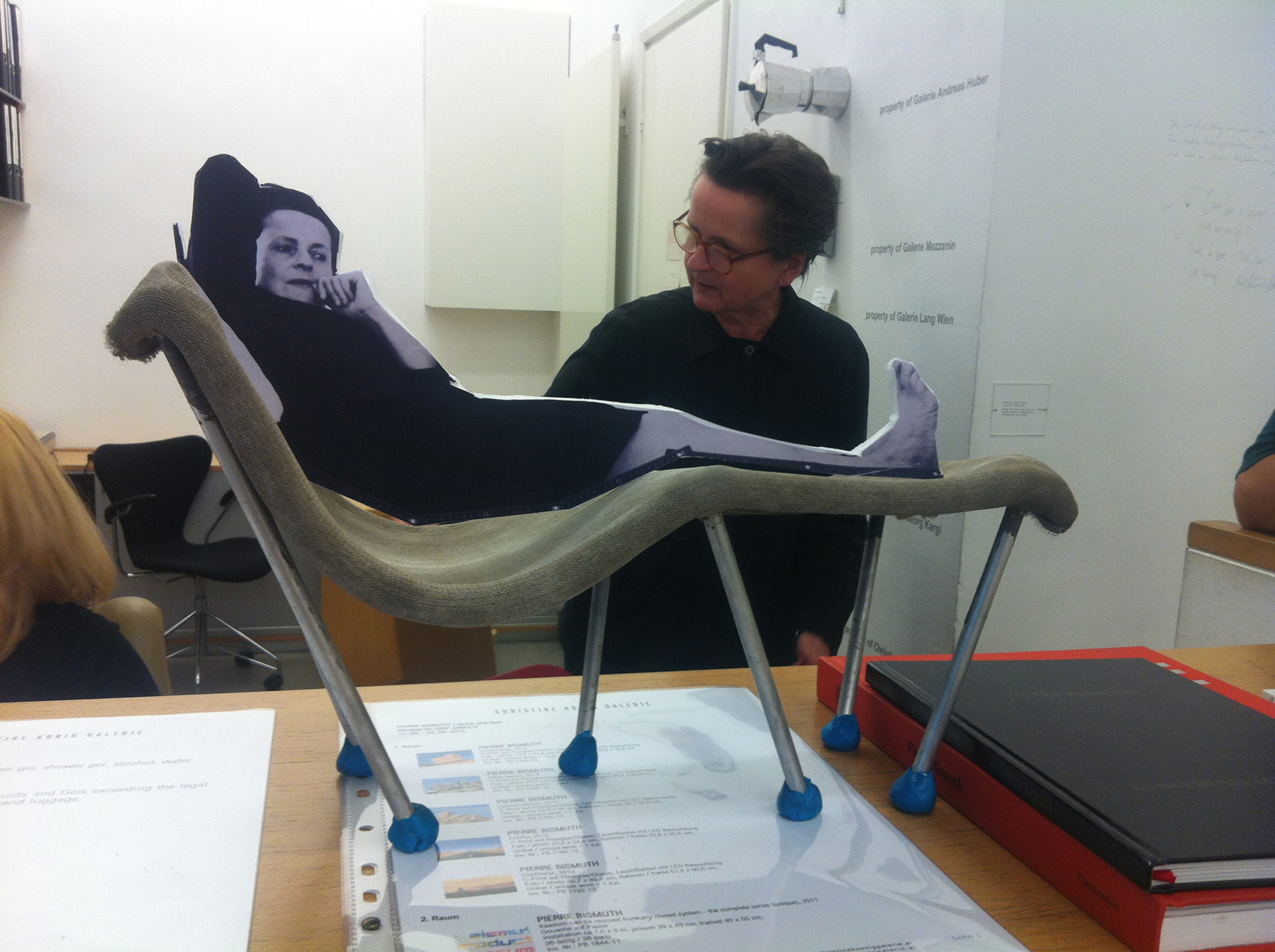 The seating sculpture produced in the gallery stretches across the space lively and gently. The 12 m2 surface offers comfort for all body sizes, postures, and body language, without predefined seating positions. The viewer becomes the tailor by defining his or her own cut from the piece. Cut into pieces, the sculpture can leave the exhibition space. August Kocherscheidt & Rupert Zallmann