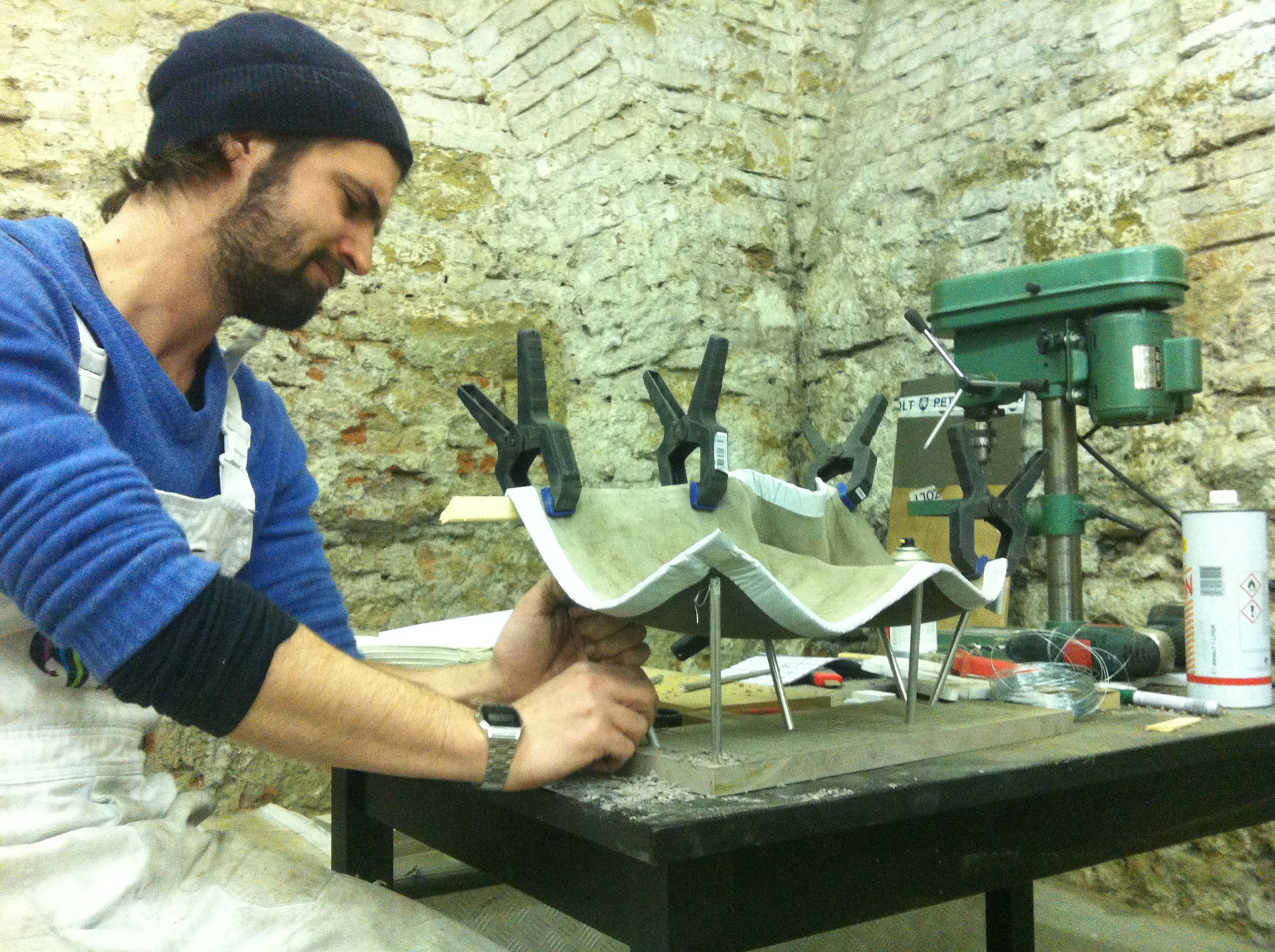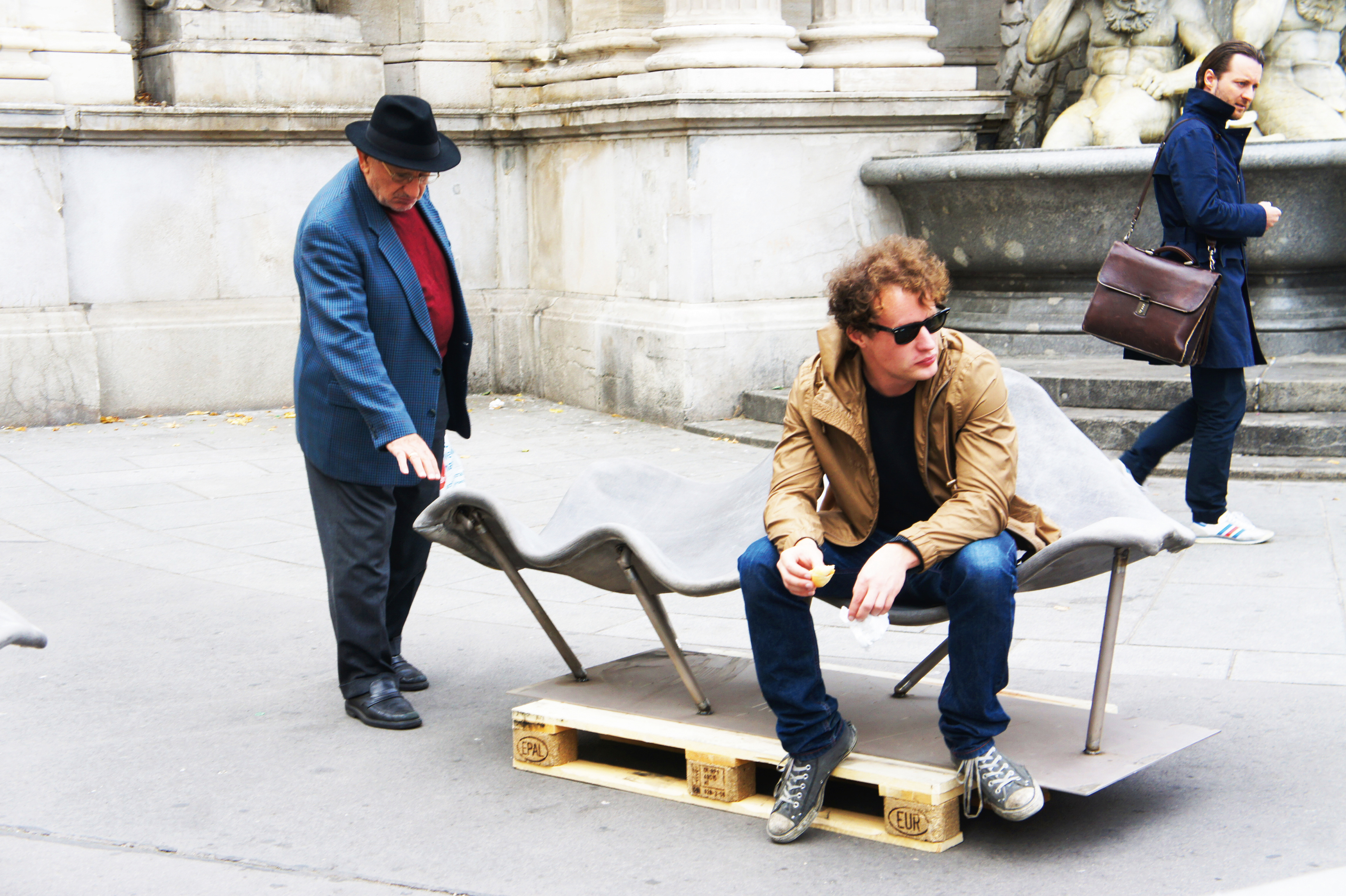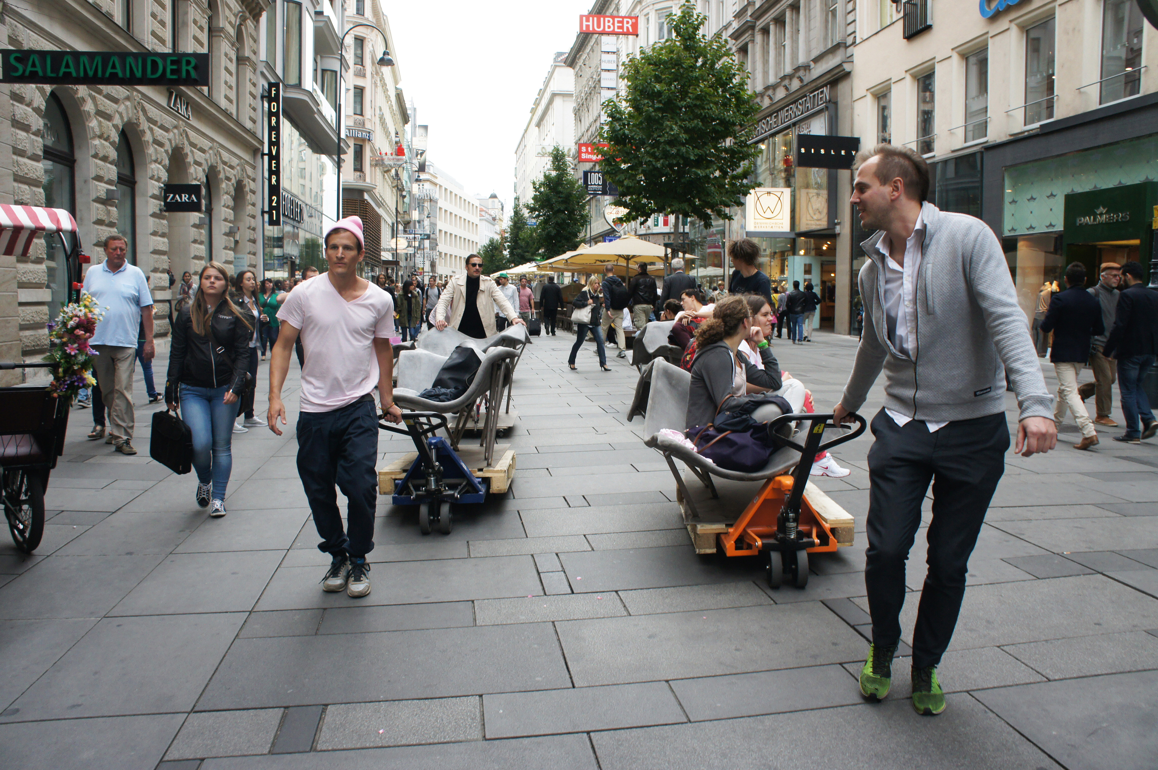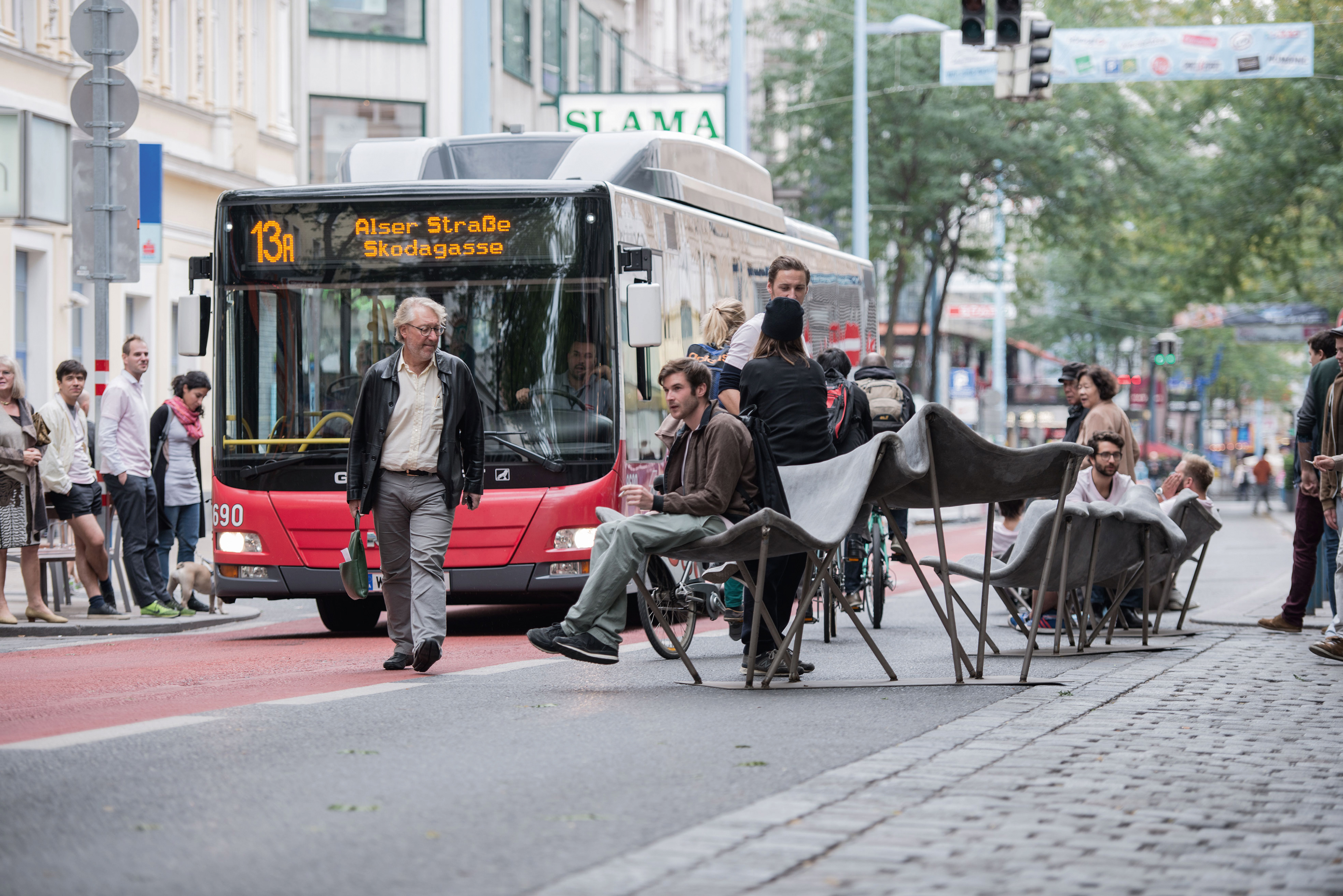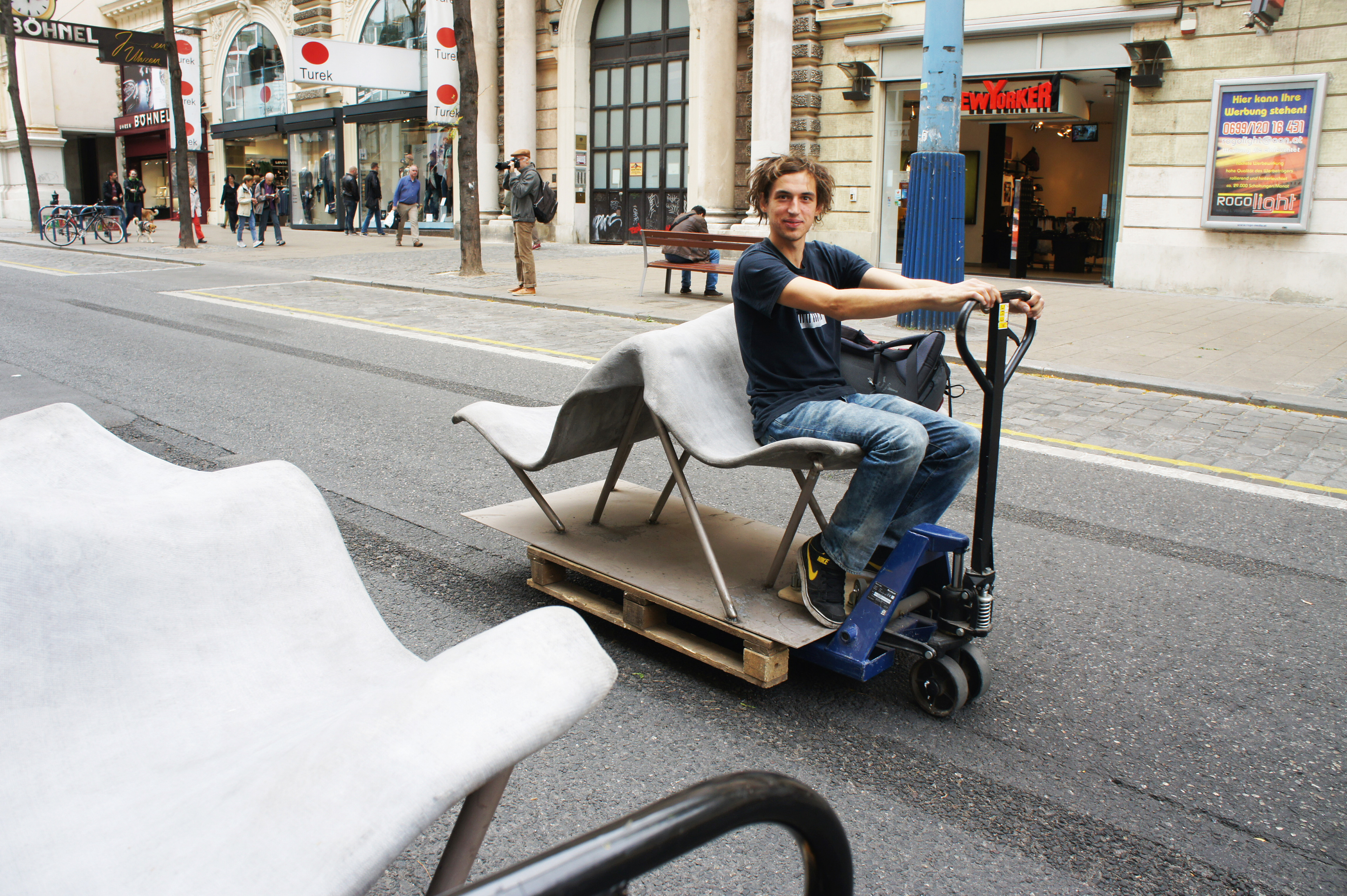 Design and construction of permanent outdoor furniture for the new WU Campus in Vienna involved creating 30 square meters of seating from textile concrete. The flat surface of the large table gradually transforms into wave-like forms toward the east, generating a variety of soft, undulating shapes that invite people to sit or lie down, making it equally suited for moments of relaxation or lively discussions. The concrete structures, made from concrete canvas, are supported by a "forest" of steel stanchions that mirror the direction and length of the surfaces above, enhancing the overall effect of dissolution and fluidity. This interplay of materials and forms creates an engaging and dynamic public space. August Kocherscheidt & Rupert Zallmann